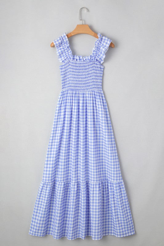 Baby Blue Gingham Maxi + Ruffle Straps